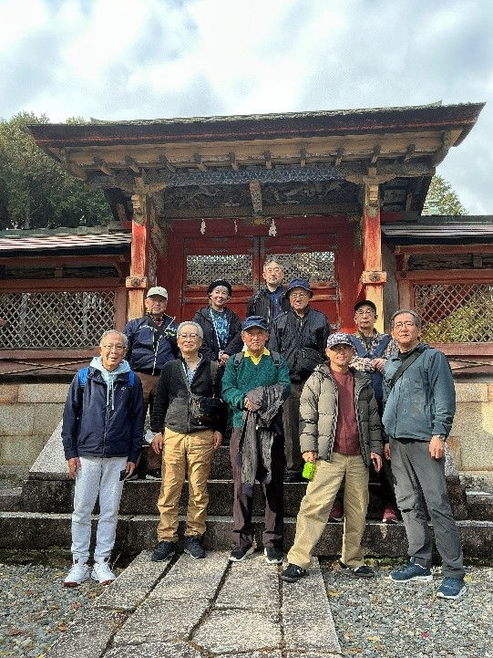 皆さん元気にスタート、先ずは日吉東照宮から日吉大社→鶴㐂蕎麦(昼食)→旧竹林院